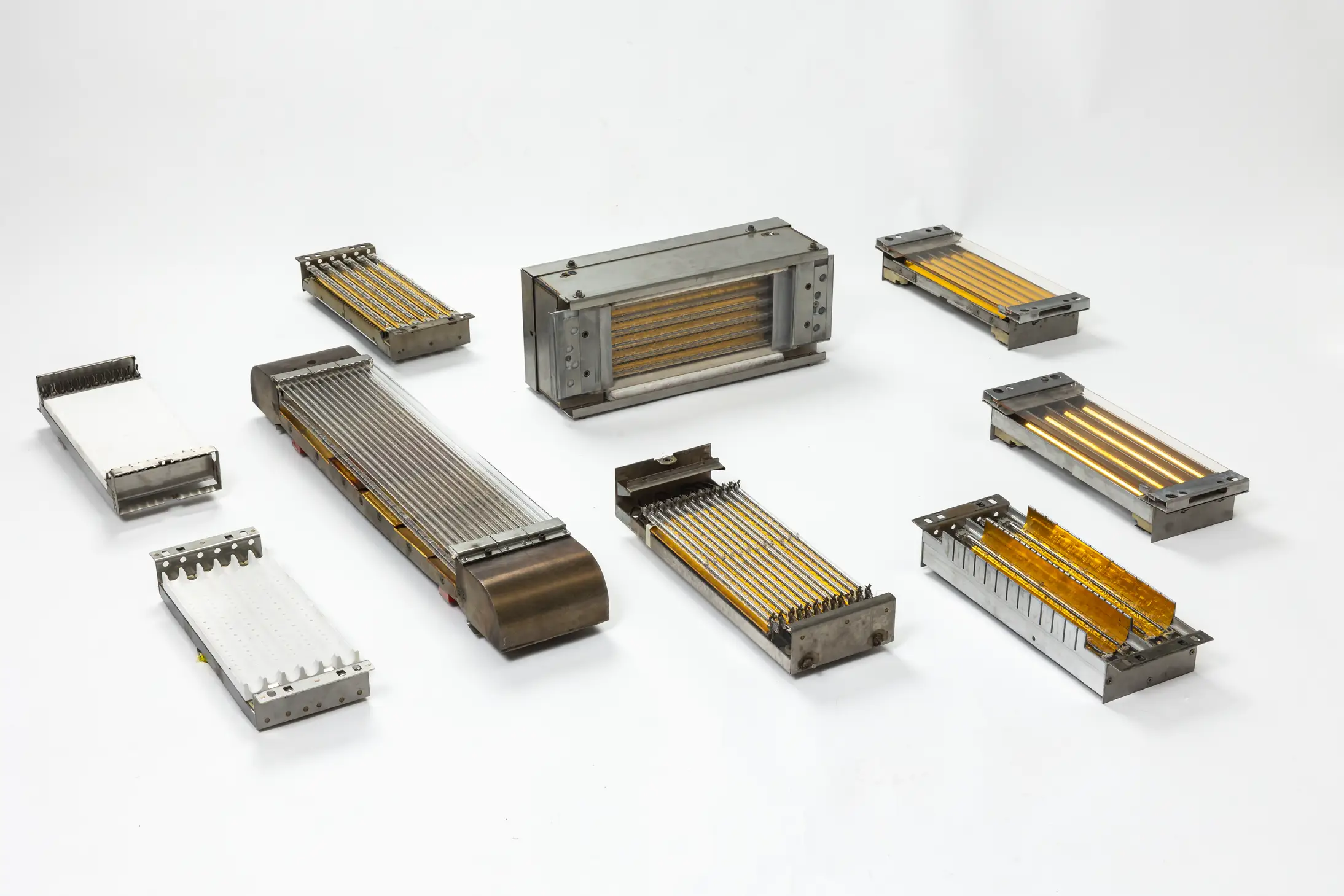 IR-moduuli koostuu neljästä, kuudesta tai kahdestatoista halogeenilampusta ja moduulissa lamppujen takana olevasta heijastinelementistä. IR-moduulin edessä on keraaminen tai kvartsinen lasi suojaamassa lamppuja sekä heijastimia likaantumiselta.